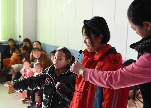 1月15日上午,在郎红滨的带领下,57名小学生和部分家长带着礼物和节目来到康复服务中心,开展“红领巾关爱特殊儿童”暖冬行动,与听障儿童共同举办了一场别开生面的友谊联欢。